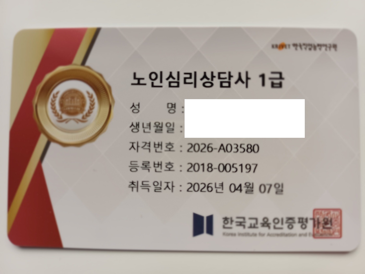 Àú´Â ÇöÀç µ¹º½¼¾ÅÍ¿¡¼ »çȸº¹Áö»ç·Î ÀÏÀ» Çϰí ÀÖ½À´Ï´Ù. ÇöÀå¿¡¼ ÀÏÀ» ÇÏ¸é¼ ¾î¸£½ÅµéÀÇ ¸¶À½À» Àß Çì¾Æ¸± ¼ö ÀÖ´Â º¹Áö»ç°¡ µÇ°í ½Í´Ù´Â »ý°¢À» ¸¹ÀÌ ÇÏ¿´½À´Ï´Ù. ¿ì¿¬È÷ ¾ÆÀ̵é°ú µµ¼°ü¿¡ °¬´Ù°¡ ³ëÀνɸ®»ó´ã»ç1±ÞÀ» Ãë±ÞÇÒ ¼ö ÀÖ´Â ±âȸ¸¦ ¾Ë°ÔµÇ¾î ¼ö°ÇÏ°Ô µÇ¾ú½À´Ï´Ù. ¹«·á·Î ¼ö°ÇÒ ¼ö ÀÖ¾ú´ø °ÍÀÌ ´õ¿í ÁÁ¾Ò°í, Åð±Ù ÈÄ Æ´Æ´È÷ °ÀǸ¦ ¼ö°Çϸç ÇöÀå¿¡¼ ¾î¸£½ÅµéÀÇ ¸¶À½À» Á¶±Ý À̳ª¸¶ ´õ¿í ÀÌÇØ ÇÒ ¼ö ÀÖ°Ô µÇ´Â Á¡ÀÌ Á¤¸» ÁÁ¾Ò½À´Ï´Ù.